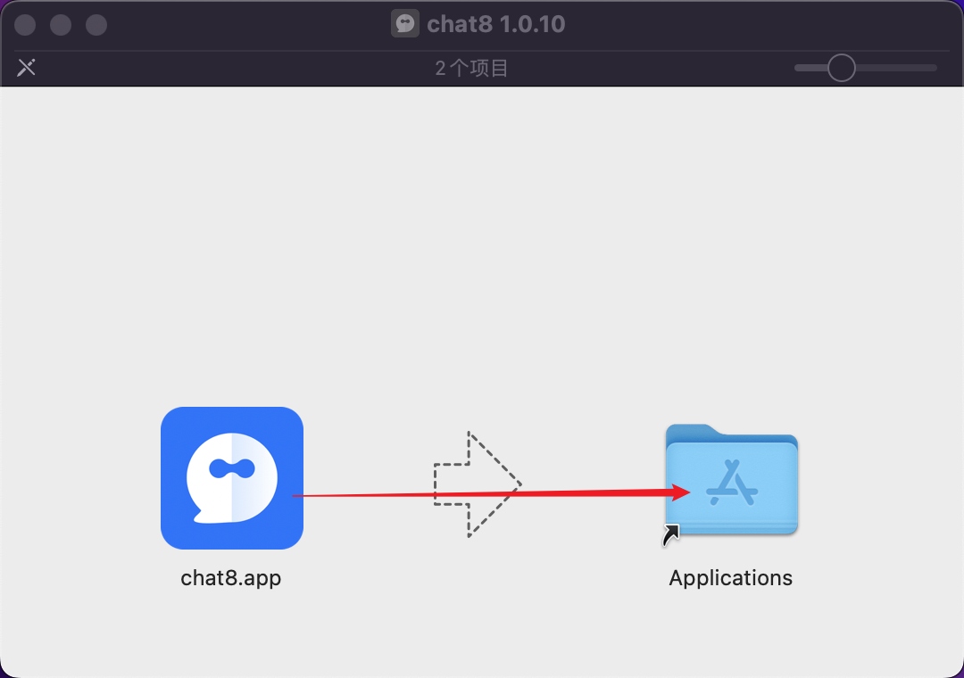 第一步:鼠标拖拽 Chat8 图标到右侧‘Applications’目录上松开鼠标