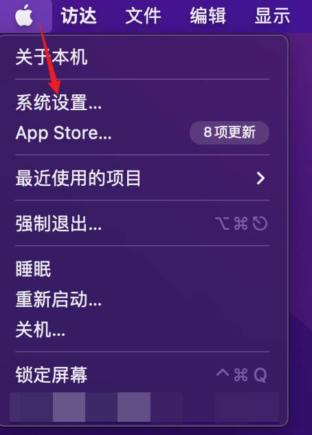 第三步:点击屏幕左上角的苹果图标,选择“系统设置”